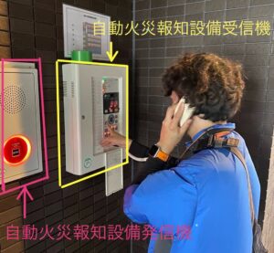 そのようにして、1階の自動火災報知設備発信機と通話ができるようになります。