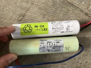 広島市中区ビルの蛍光灯誘導灯の蓄電池が切れていたため、交換を行いました。