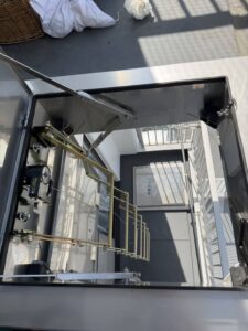 避難はしごが腐食しておりはしごが使用出来ず、下降不可とのことで改修工事を行いました。