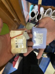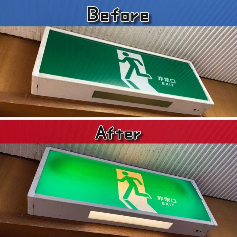 消防点検を行った際に、誘導灯の蓄電池が切れていることが判明し、交換致しました。