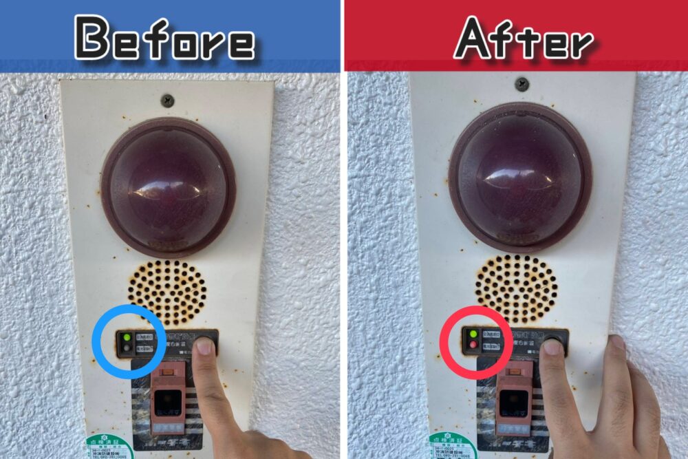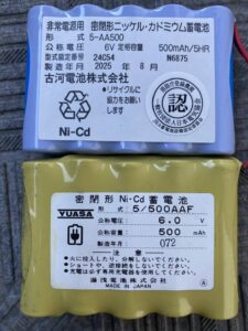 消防点検を行った際に、蓄電池のバッテリーが切れていることが判明し、2カ所交換しました。