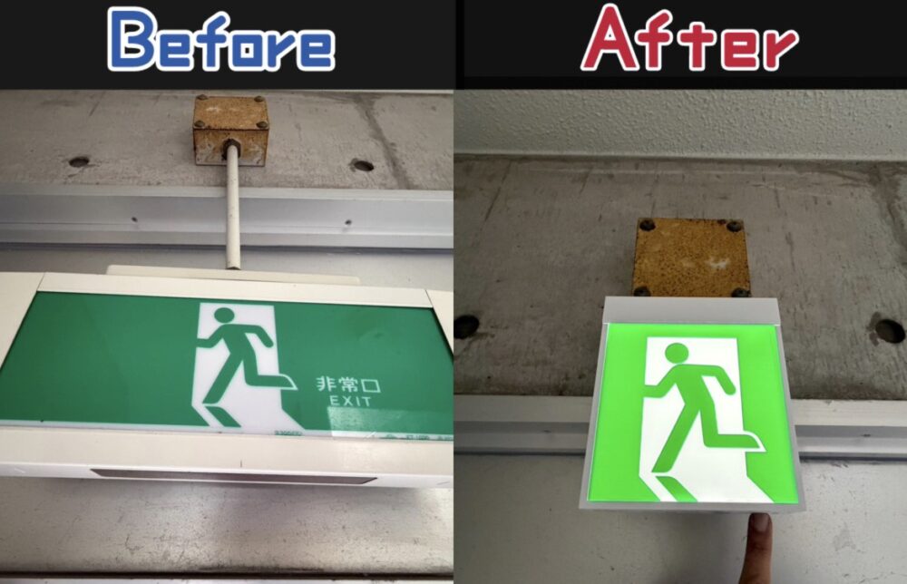 吊り具自体を撤去し、新しくLED誘導灯を設置しました。